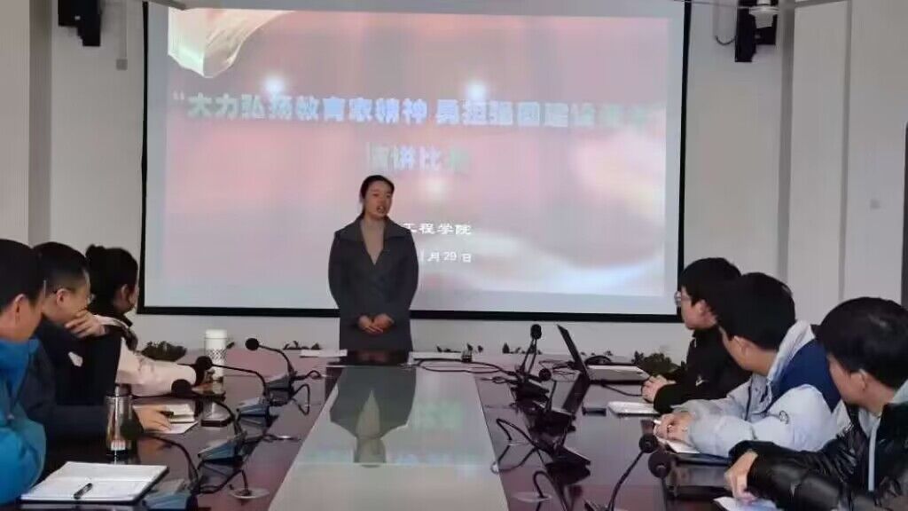 为大力弘扬“心有大我、言为士则、启智润心、勤学笃行、乐教爱生、胸怀天下”的教育家精神,根据学校工会安排部署,买球体育官方网站于11月29日在机电楼二楼会议室举办“大力弘扬教育家精神 勇担强国建设使命”主题演讲比赛。学院党总支副书记(主持工作)丁迎春等领导老师担任评委。