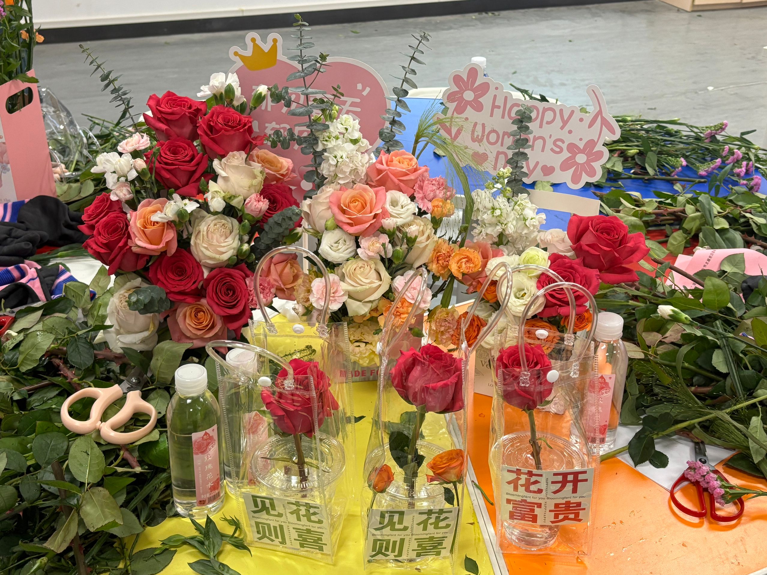 交流研讨结束后,师生们携手开展主题插花活动,大家精心搭配、细致修剪,感受美、欣赏美、创造美。