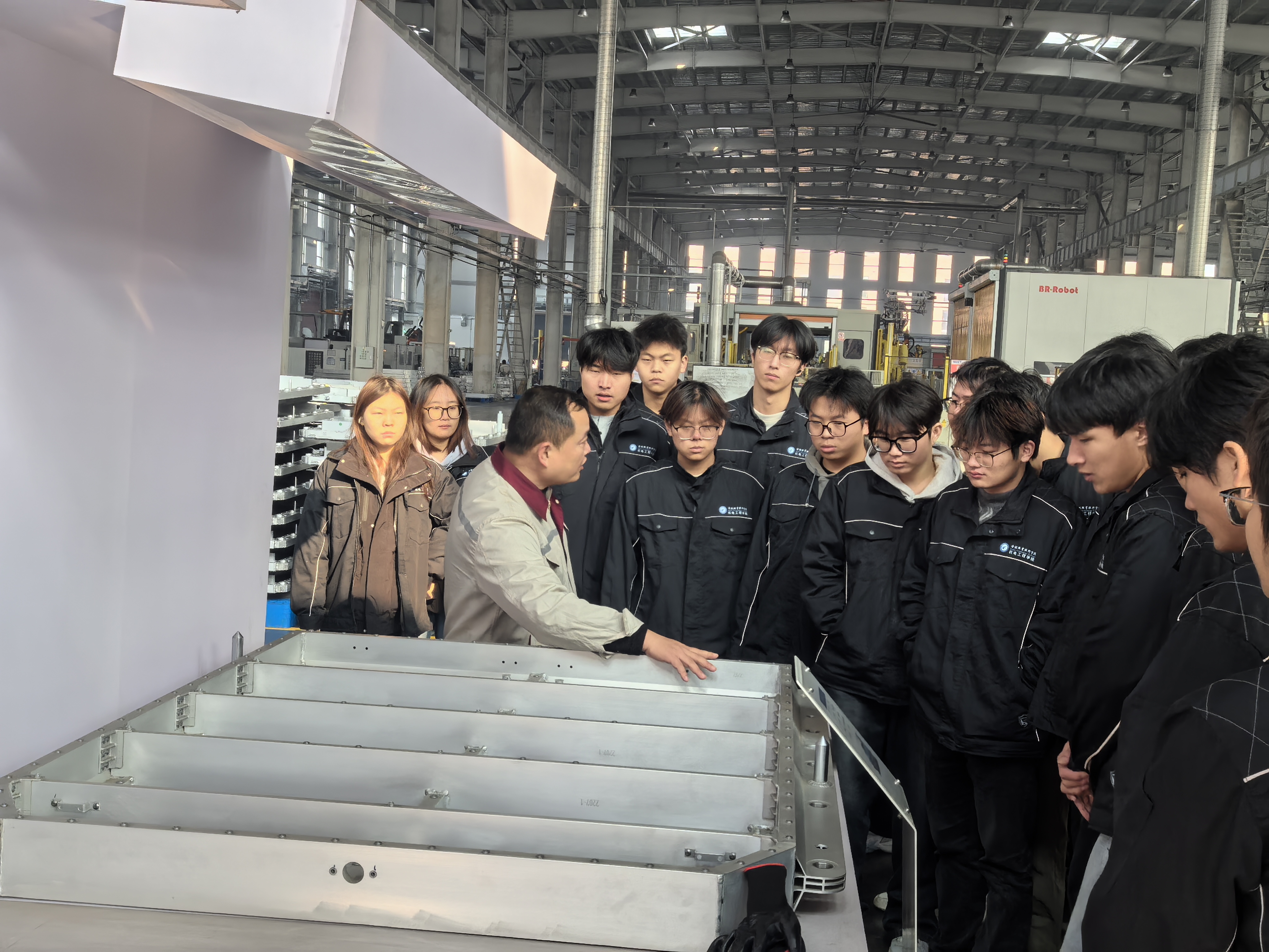 在合肥海尔洗衣机有限公司,同学们观摩了标准化智能制造流程,切身感受到工业自动化与信息化融合的实际应用;安徽驰宇新材料科技有限公司展示了新能源汽车电池产品从研发到产业化的完整链条,拓宽了学生对材料科学与工程应用的认知视野;合肥维信诺电子有限公司的柔性显示技术展厅,呈现了电子信息领域的前沿成果与创新趋势;安徽博清机器人科技有限公司则通过现场演示自动化设备与系统解决方案,生动诠释了智能控制技术在工业场景中的关键作用。