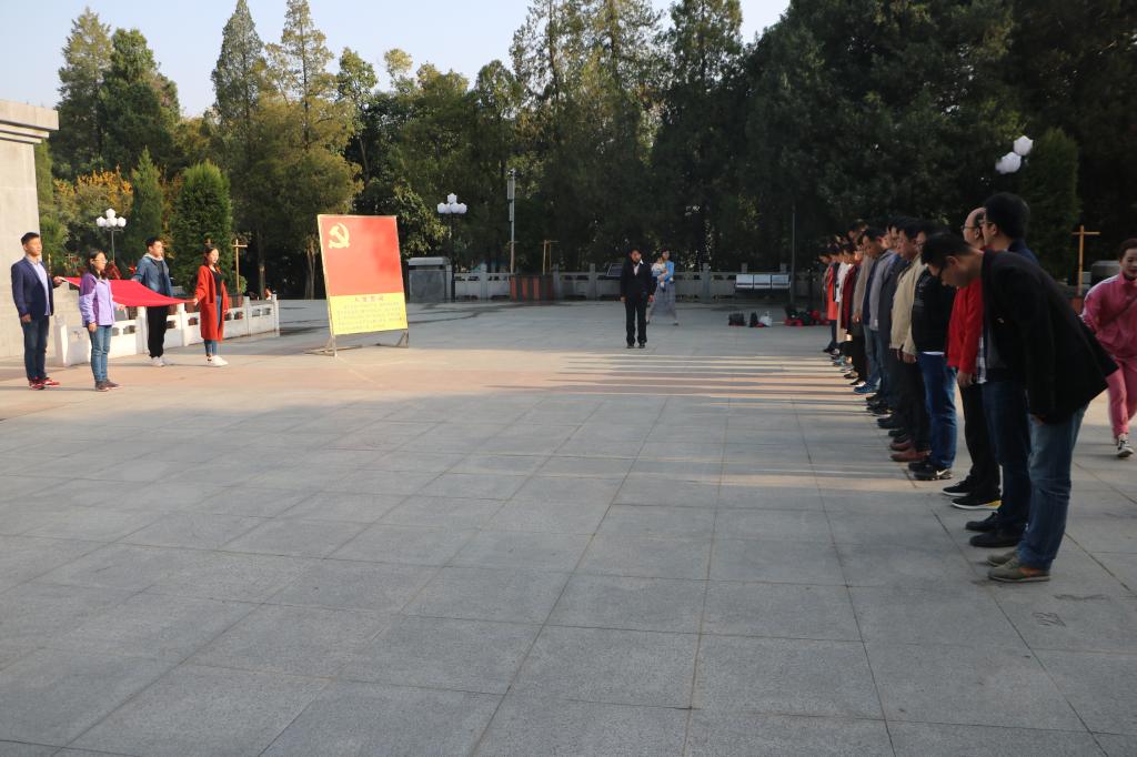 3日上午,党员同志们来到金寨县烈士纪念园,拾级而上,至革命烈士纪念塔正前方肃立,向革命烈士默哀,高唱《中华人民共和国国歌》。全体党员在王克勇同志的带领下,重温入党誓词,向纪念塔三鞠躬,表达对革命烈士的深切缅怀和无限敬仰。