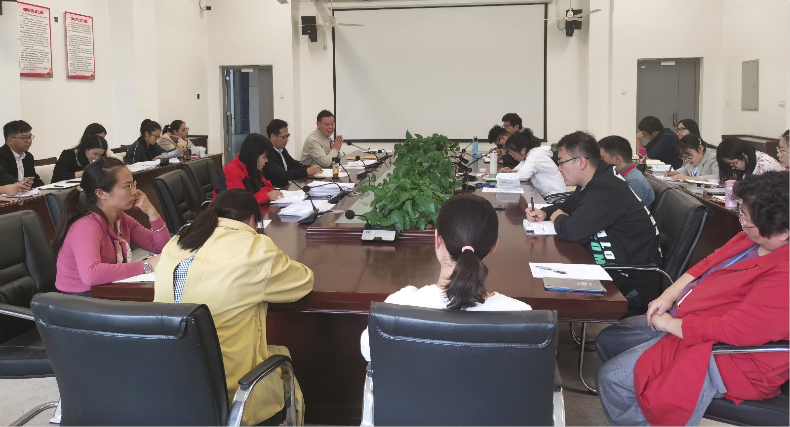 10月15日下午,买球体育官方网站在机电楼二楼会议室召开全体教职工大会暨十月份党员理论学习会议。学院全体教职工参会,会议由该院党总支副书记丁迎春主持。