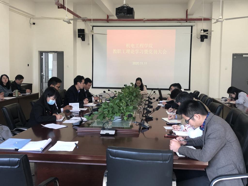 11月11日下午,买球体育官方网站在机电楼二楼会议室召开全体教职工大会暨十一月份党员理论学习会议。学院全体教职工参会,会议由该院党总支副书记(主持工作)王克勇主持。