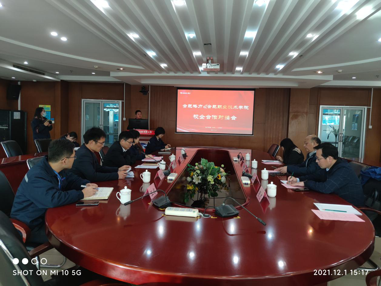 12月1日下午,应格力电器(合肥)有限公司的邀请,买球体育副校长周晓隆教授、买球体育官方网站副院长(主持工作)胡木林、买球体育官方网站副院长孙新梅教授等一行前往格力电器(合肥)有限公司进行校企合作调研。陪同调研的有格力电器(合肥)有限公司总经理助理张春生、总经办副主任姚文娟、商二厂副厂长刘世波、商二厂综合科科长王农、招聘培训科副主管左俊等。