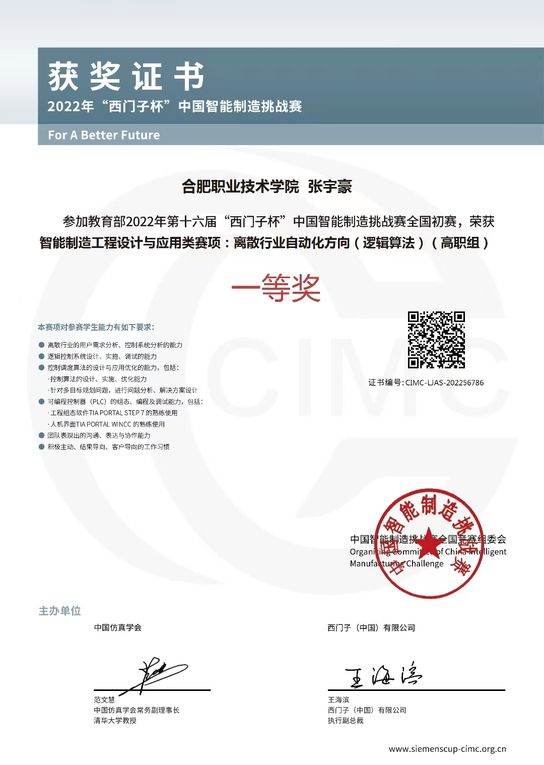 “西门子杯”中国智能制造挑战赛是中国智能制造领域规模最大、规格最高的A类竞赛,大赛2010年被纳入教育部质量工程资助项目,2012年被中国-欧盟工程教育论坛列为唯一的大学生竞赛项目,2019年成为中国高等教育学会全国普通高校学科竞赛排行榜项目。大赛内容涉及智能制造领域中的科技创新、产品研发、工程设计和智能应用等,为我国智能制造发展培养和选拔具备解决复杂工程问题的技术及创新人才。大赛以企业真实的工程项目和科研项目作为竞赛赛题,以真实的工业设备和工业环境作为赛场,以工业企业的工程标准作为考核评分指标,全面锻炼学生解决复杂工程问题的综合能力、系统思维。在本届初赛中来自全国700多所高校的6000支队伍10000余名师生参赛。