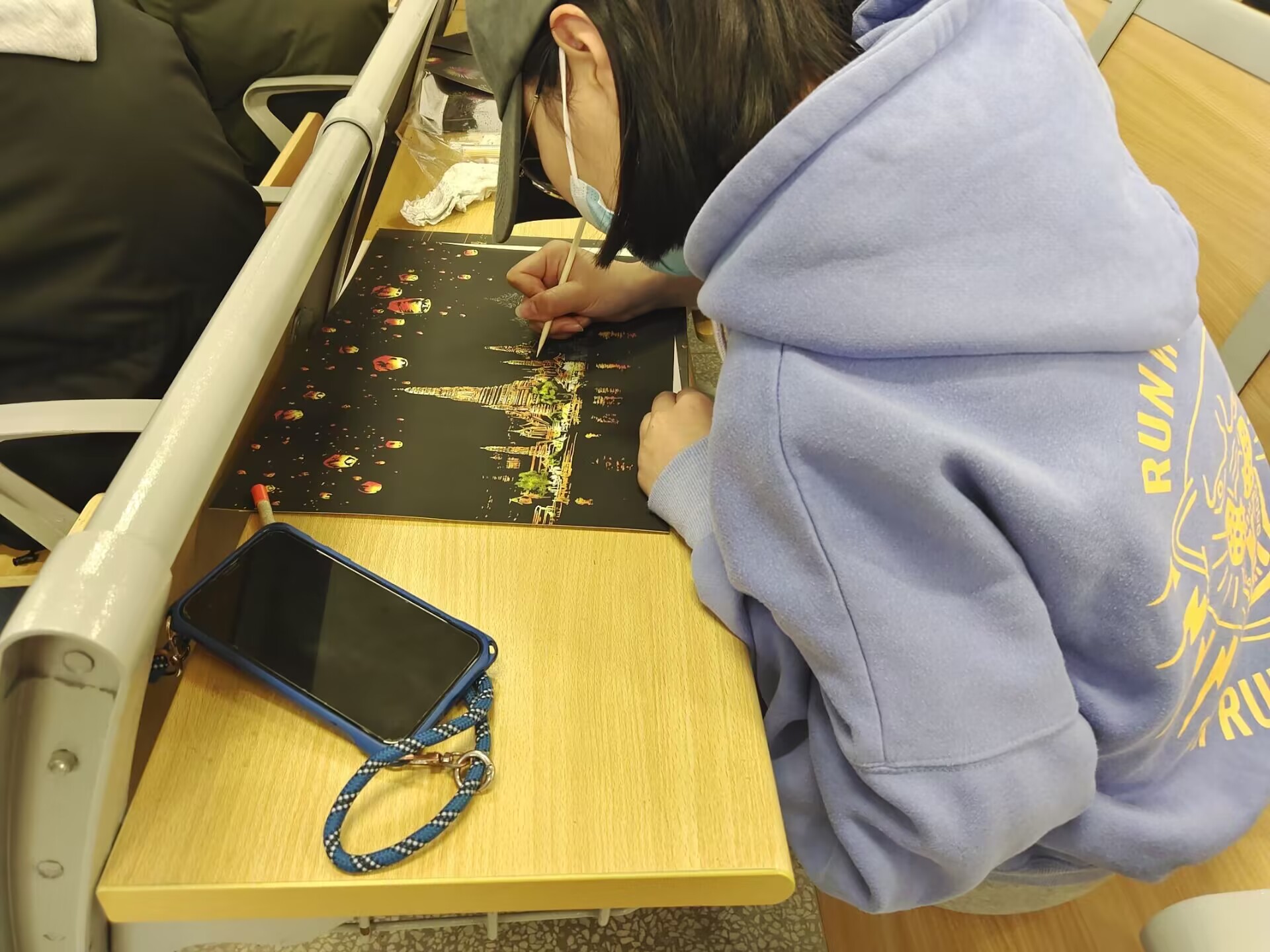 活动现场艺术氛围浓厚,画笔不断挥动,一幅幅美丽的图画映入眼帘。由简略到精细,大家集思广益、激发创意,注入文化内涵,赋予精神力量。从构图、起形,到调色、上色、精修……同学们分工合作、一丝不苟,高效有序地开展刮刮画彩绘工作。 此次活动不仅锻炼了学生的耐心和毅力,一幅幅美丽的彩绘画也展现了大家积极向上的生活状态。