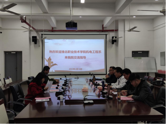 3月16日下午,淮北职业技术学院实训就业处处长周晓曙、机电工程系副主任苏兆兴等一行五人来买球体育买球体育官方网站考察学习。学校党委委员、副校长周晓隆,买球体育官方网站院院长胡木林等接待来访客人。