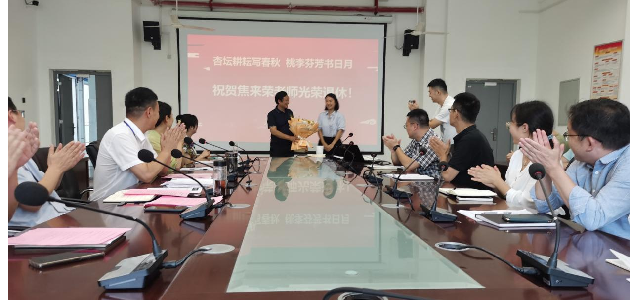 8月29日上午,买球体育官方网站全体教职工在机电楼二楼会议室举行焦来荣老师光荣退休欢送会。
