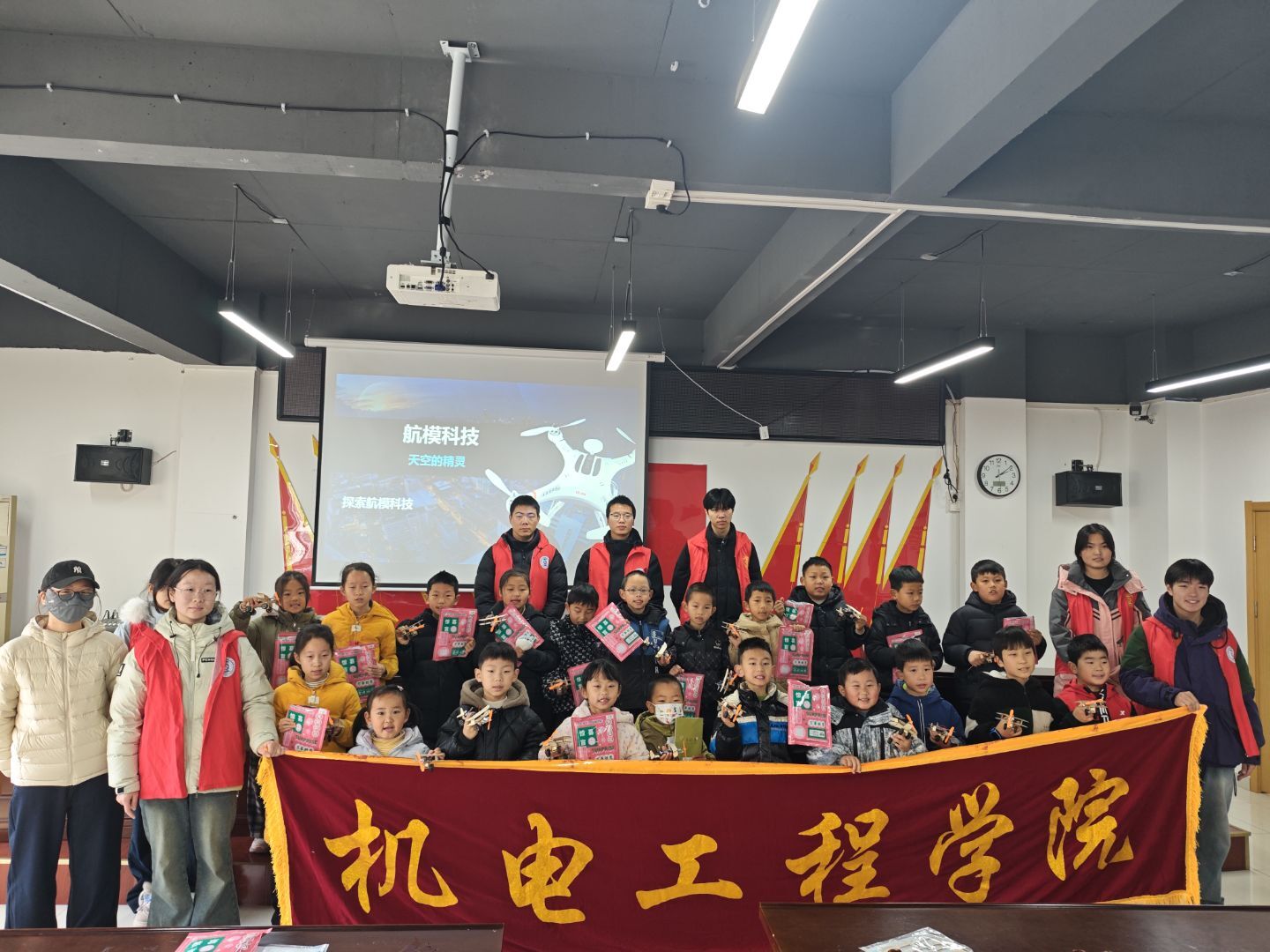 活动现场,航模社团的同学化身“科普小老师”,通过展示不同类型的航模器材,直观地向孩子们讲解航模的构造原理、飞行力学等基础科学知识。社团成员用通俗易懂的语言,将专业的航空知识拆解为一个个生动有趣的知识点,从机翼的升力原理到无人机的操控技巧,孩子们听得津津有味,时不时举手提问,现场互动氛围十分热烈。