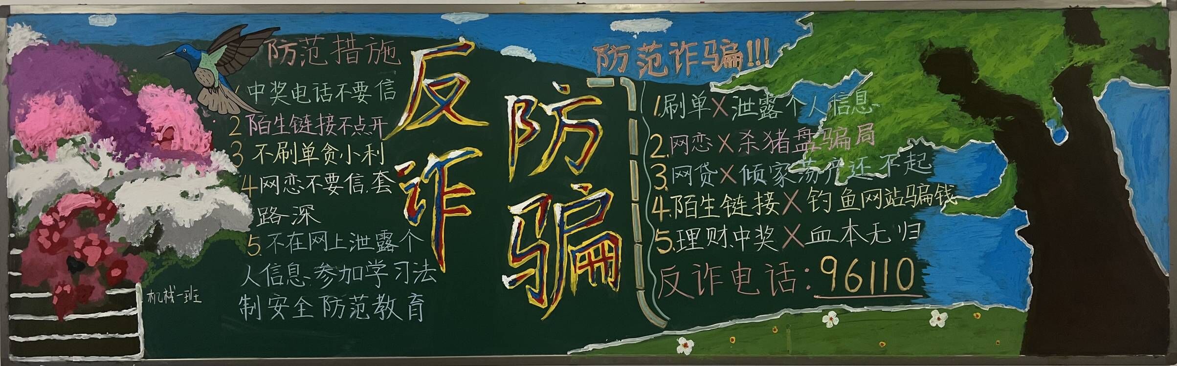 为了提高同学们的反诈骗意识,增强防范网络诈骗的能力,买球体育官方网站于2023年11月20日,开展了以《反诈防诈,从我做起》为主题的黑板报评比活动。