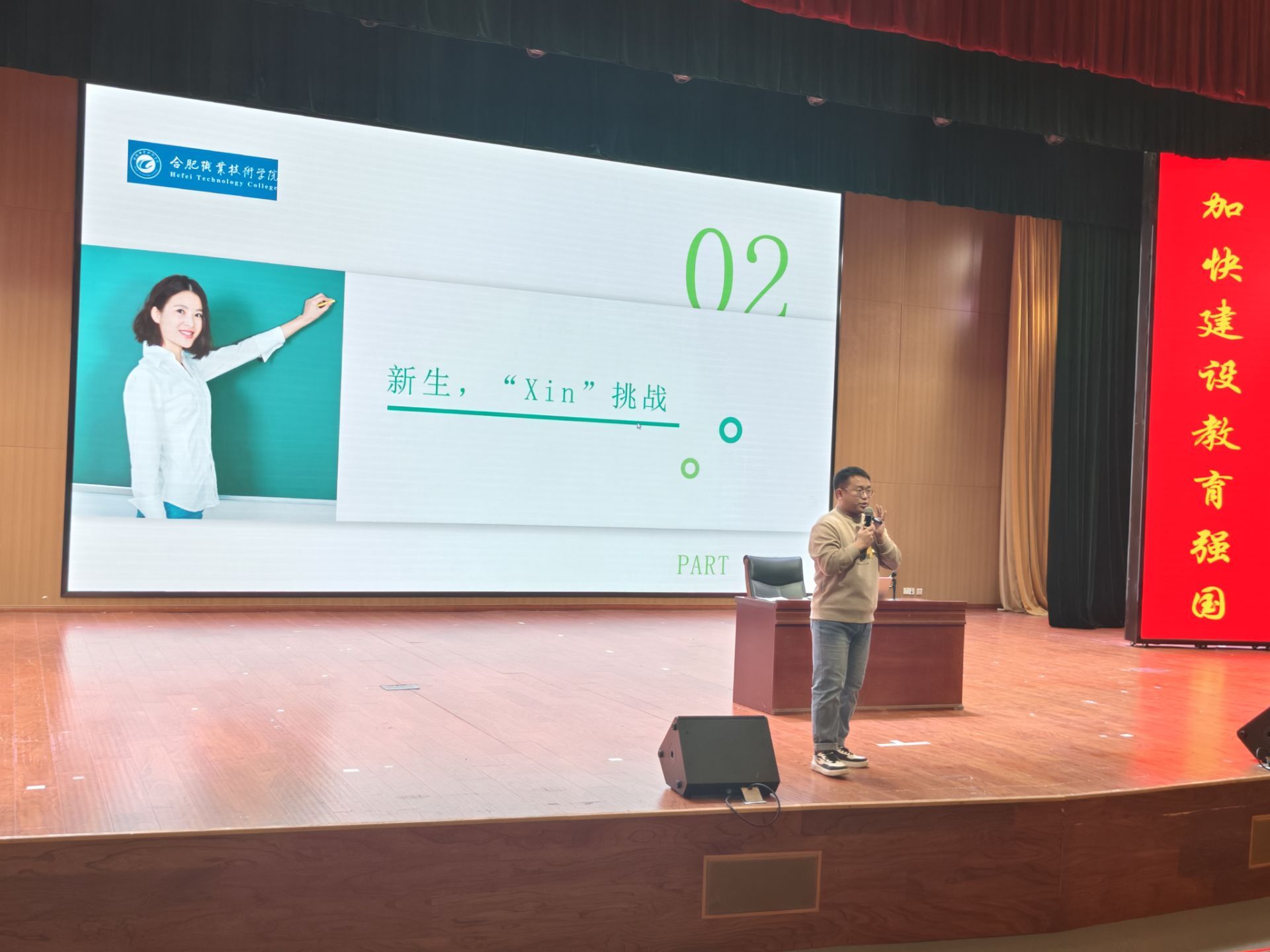 接着,李老师进入了第二个部分——“新生,‘Xin’挑战”。他分析了新生在大学期间可能面临的挑战,包括学习压力、人际关系、情感波动等方面,并鼓励新生们以积极的心态去面对这些挑战,不断提升自我,实现自我超越。