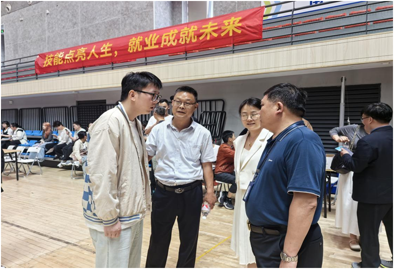 王杰才一行现场与企业招聘人员深入交流,询问行业发展现状和企业用人需求,并关心学生实习和就业规划,积极了解学生求职意愿和面试情况,鼓励学生把握机遇,迎接新的挑战。该院专业教师全程为学生答疑解惑,提供实习就业和征兵入伍指导,让学生们更加明确职业发展的方向,激发他们投身社会、实干报国的热情,树立对未来职业生涯的信心和决心。