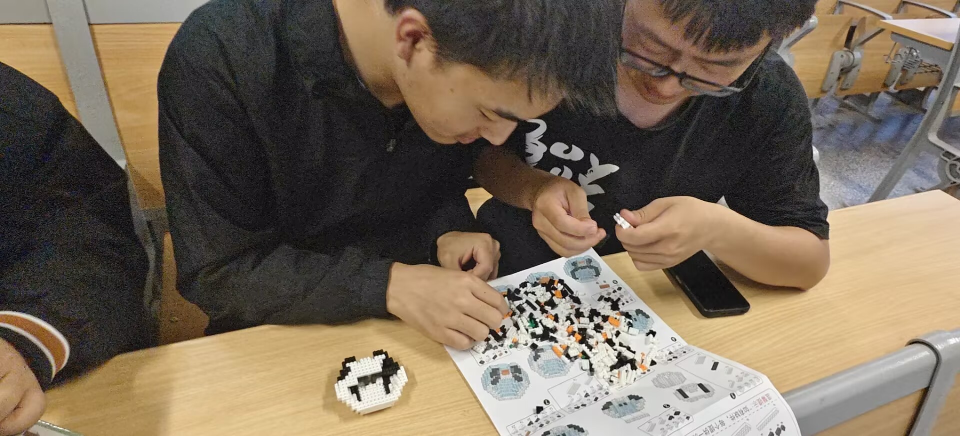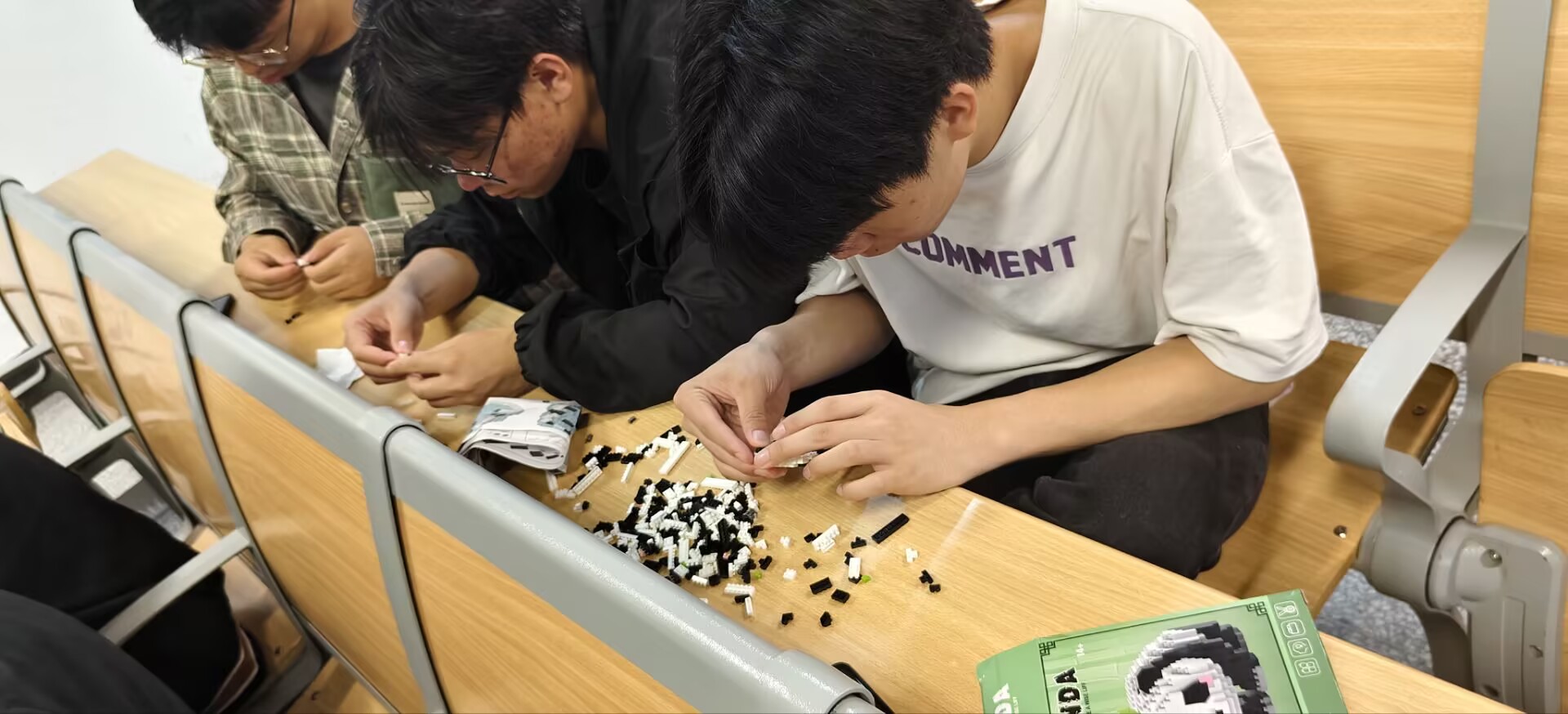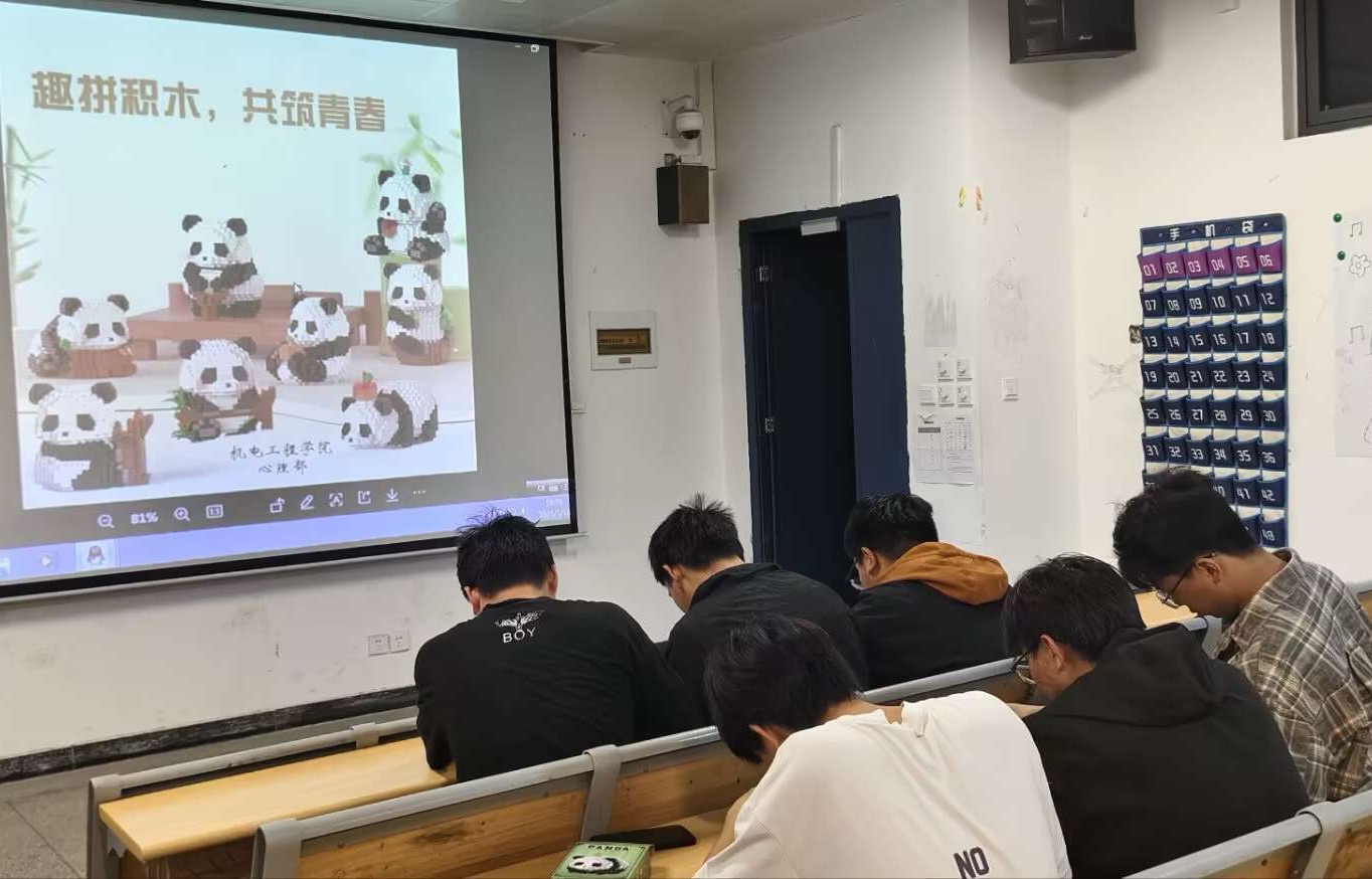 活动伊始,学生会心理部成员向参与同学介绍了本次活动的意义。拼装积木不仅是一场动手实践,更是一种有效的心理减压方式,在专注于积木拼接的过程中,同学们能够暂时忘却外界的烦恼,沉浸在创造的乐趣里,实现自我疗愈。随后,在心理部成员的引导下,同学们迫不及待地开始了积木拼装之旅。现场气氛热烈而和谐,大家或独自专注思考、精心拼接,或与身边的同学热烈讨论、协作配合。随着时间的推移,一块块零散的积木在同学们的巧手下逐渐变成了形态各异、活灵活现的熊猫造型。在这个过程中,同学们全神贯注,脸上洋溢着专注与满足的笑容,尽情享受着创造带来的成就感和乐趣。