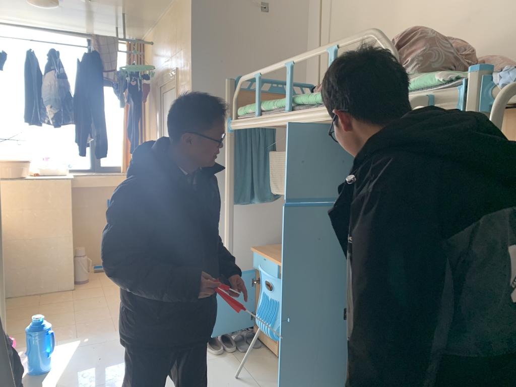 12月29日下午1点,买球体育官方网站党总支副书记(主持工作)王克勇带领全体辅导员组织开展了宿舍安全检查活动,重点检查了宿舍用水用电安全。提醒同学们在平常的生活中提高安全意识,禁止使用大功率电器,不要私拉电线;冬季天气干燥,注意防范火灾。叮嘱寝室成员之间要和睦相处,建立友好关系。嘱咐同学们要落实好晨午晚检制度,勤开窗,多通风;寝室长要定时对寝室进行全面消毒,切实做好疫情防护工作;同时嘱咐同学们注意天气变化,穿衣保暖,适当锻炼,养成良好的卫生习惯。同学们纷纷表示会自觉遵守学校的规章制度,注意用水用电安全。