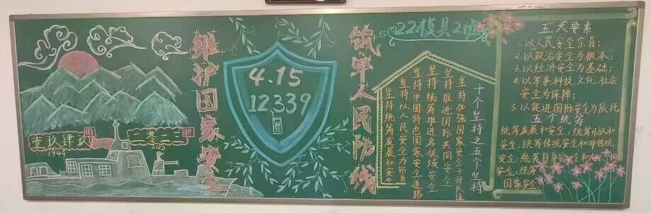 本次黑板报以“4·15全民国家安全教育日”为主题,贯彻总体国家安全观,增强全民国家安全意识和素养,夯实以新安全格局保障新发展格局的社会基础。买球体育官方网站22级各班级积极准备、认真设计,在沉浸式的绘画中,同学们更加深入理解总体国家安全观,增强自身维护国家安全的责任感、使命感和自觉性、主动性。