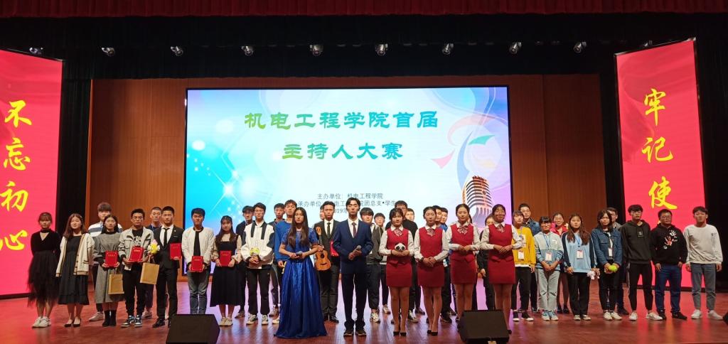 此次大赛分为初赛和决赛两个赛制,初赛在10月份通过自我介绍、才艺展示、模拟主持等环节进行PK,最终选拔出了12位选手进入决赛。决赛分为模拟播音和模拟主持两个环节进行,模拟播音要求选手们要做到感情控制,模拟主持要求每位选手根据自己的特点自行编辑主持稿。在这个舞台上每位选手尽情展示自己的风采,有的慷慨激昂,有的温婉动听,有的激情四射。经过激烈地角逐,19机电6班的王铎同学成为“金声”者。