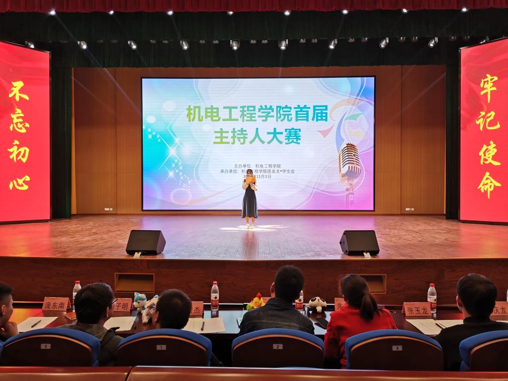 111日下午,买球体育官方网站在大学生活动中心举办以“金声有你 麦响奇迹”为主题的首届主持人大赛决赛,学院老师及19级新生到场评选、观赛。