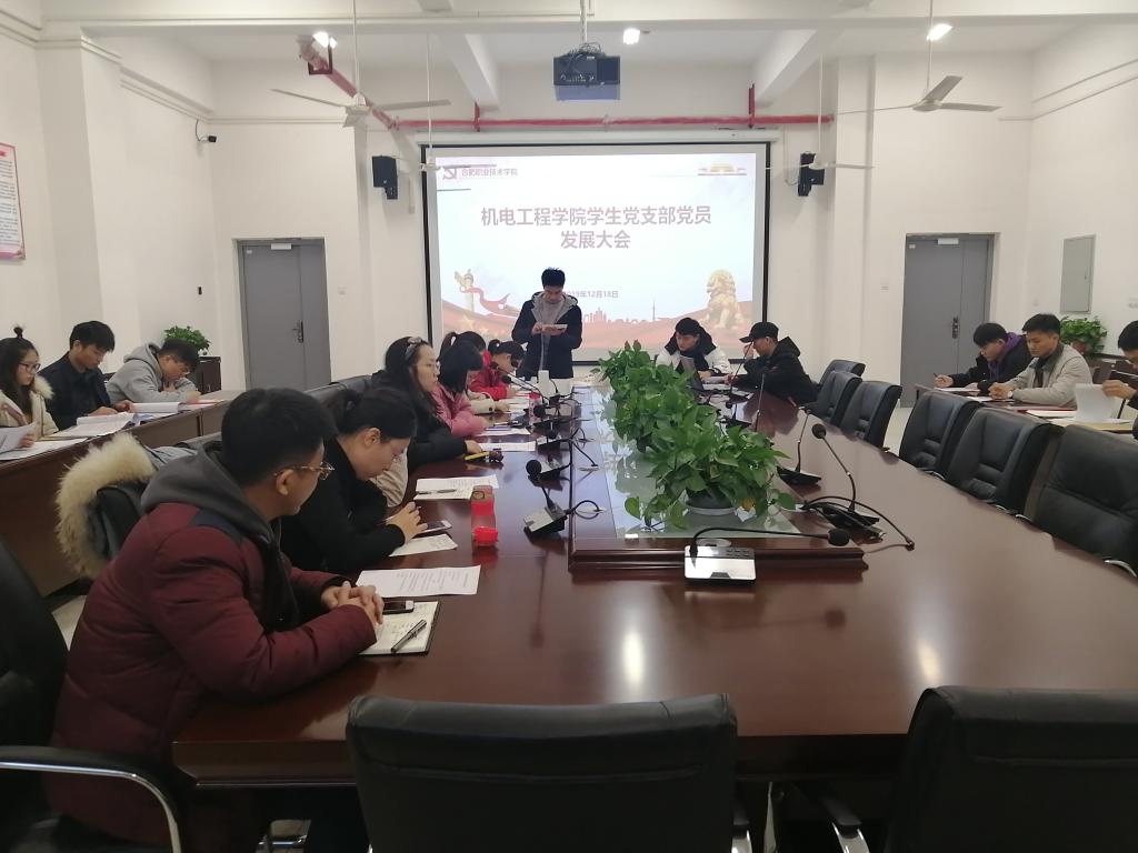 12月18日下午,买球体育官方网站学生党支部在机电楼二楼会议室召开党员发展及转正大会,学生党支部全体党员、培养联系人、6名预备党员及9名发展对象参加了会议。会议由学生党支部书记朱何萍主持。
