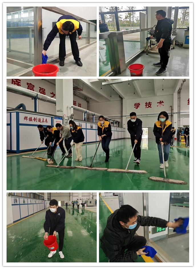 下午,在学院统一号召下,院领导班子带领学院在校教师对机电楼一楼大车间开展了卫生清洁活动。教师们身穿工作服,自带拖把、抹布等工具,化身“最美保洁员”,对车间出入口、地面、实训区、桌椅、门窗、器械设备等区域进行了认真打扫。经过二个多小时的辛苦劳动,在老师们同心协力下的大车间焕然一新。院领导班子表示这样的卫生清扫活动后期还会继续开展,旨在营造一个舒适、安全的环境。这次义务劳动也是买球体育官方网站党员教师践行“六个一次” 品牌活动 (当一次志愿者、深入一次宿舍、进行一次谈心谈话、做一次有关学生的调查研究、解决一次学生的实习困难、参加一次学生活动)的实际表现,充分体现了党员老师的先锋模范带头作用。