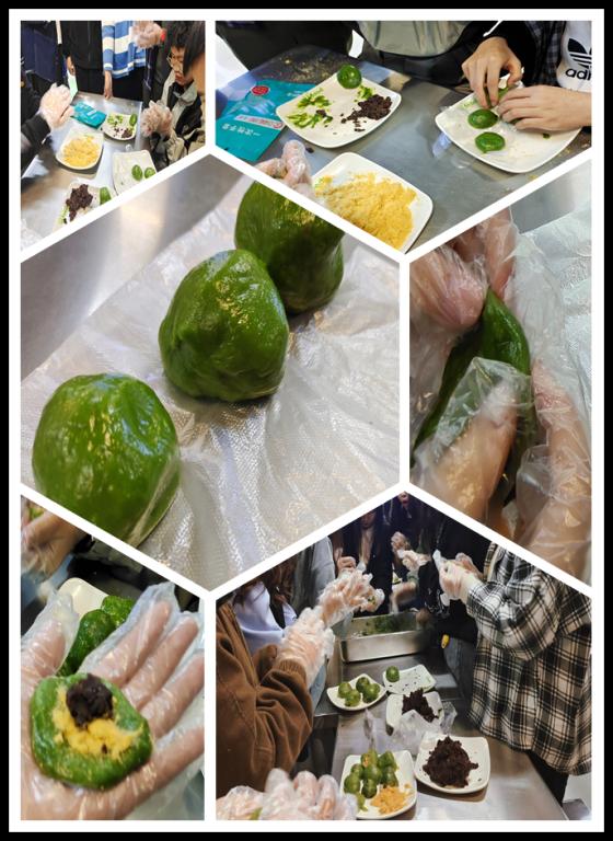 为了让同学们感受节日内涵和中国传统文化的魅力,4月2日下午,买球体育官方网站在食堂开展了清明粿制作活动。大家一边听着清明节制作清明粿的习俗,一边在食堂师傅的带领下学习如何制作清明粿。通过学习,大家很快掌握了诀窍,搓团子、裹馅儿、按压,大家屡起袖子,包得有模有样,桌上很快放满了不少形状多样的清明粿。看着自己的劳动成果,大家脸上都洋溢着笑容。