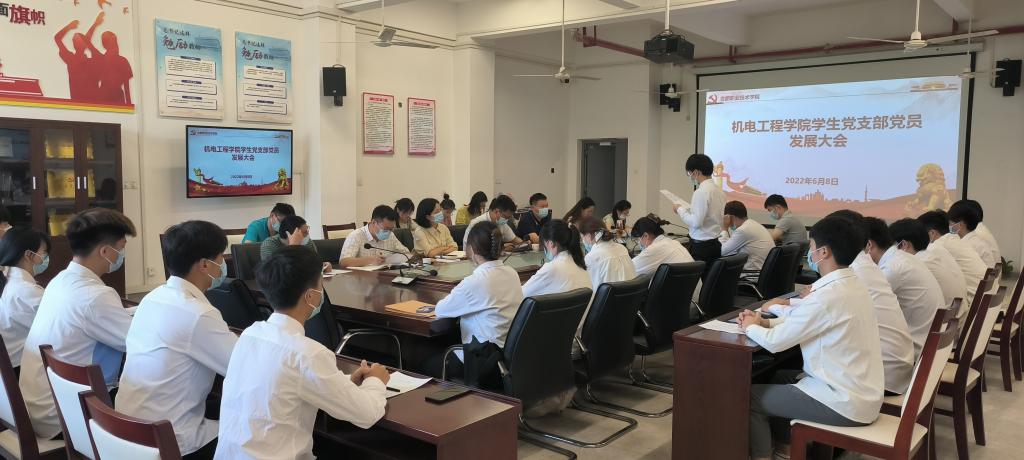 2022年6月8日下午,经学院党总支批准,买球体育官方网站学生党支部在机电楼二楼召开学生党员发展大会。学院学生党支部全体党员、入党介绍人、培养考察对象参加了此次大会。此次会议由学院专职组织员汪洋主持,秉承着“公开、公平、公正”的态度,严格按照发展党员工作程序执行。