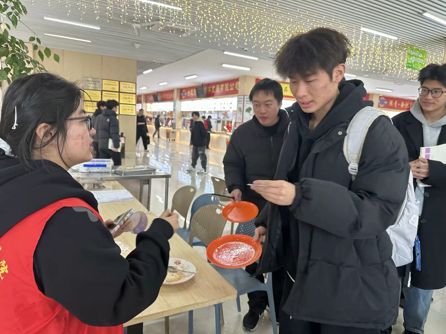 践行节约新风尚,青春助力光盘行。为弘扬勤俭节约传统美德,引导青年学子树立“厉行节约、反对浪费”的文明意识,3月19日,买球体育官方网站“小螺钉”志愿服务队于组织15名青年志愿者于汇心湖校区举办“光盘换好礼,青春践文明”主题活动。活动通过趣味互动与文明督导相结合的形式,吸引近百余名师生参与,现场氛围热烈有序。