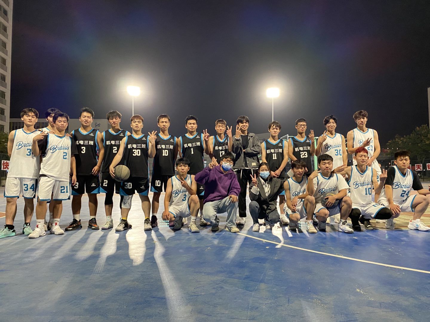 赛事从10月20日开始,赛制分为小组赛、八强赛,半决赛和决赛,每支队伍至少需要进行3场以上比赛。随着裁判的哨响,篮球赛正式拉开序幕。比赛中,各位队员全力以赴、敢打敢拼、越战越勇,带球、运球、传球、投篮,一系列潇洒、规范的动作,引来围观同学们的一阵阵喝彩声。场边同学们情绪高涨、摇旗呐喊,不时地为队员打气、喝彩,气氛热烈,一场场紧张激烈、扣人心弦的角逐,不断的在篮球场内上演。比赛过程中,裁判员们秉公执法、严肃认真,保障了比赛的公证性、连续性和观赏性,大家团结一致、积极拼搏,成为操场上一道绚丽的风景线。最终22机电3班获得本次比赛的冠军,冠军队还和学院教职工篮球队进行了一场友谊赛。