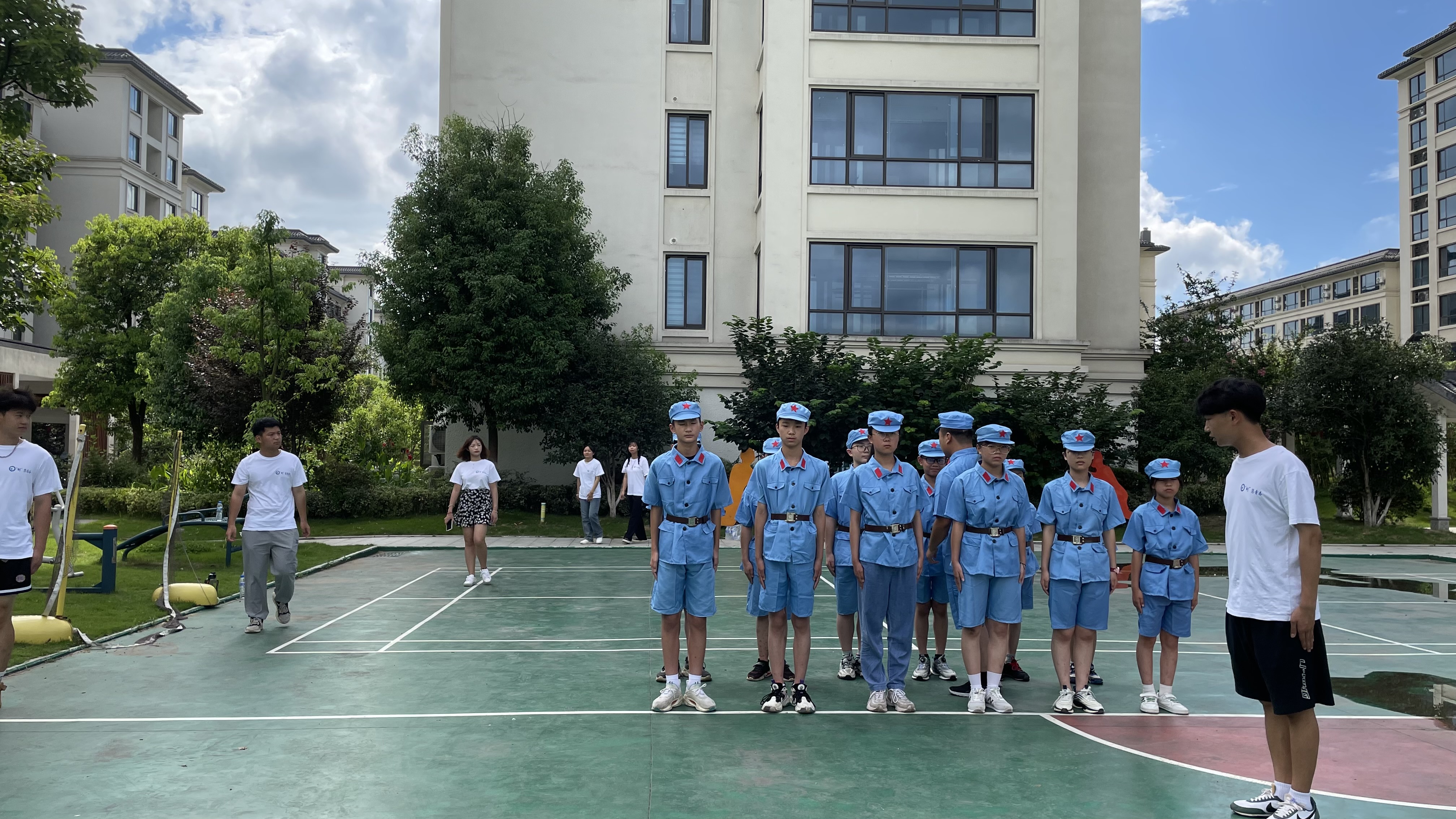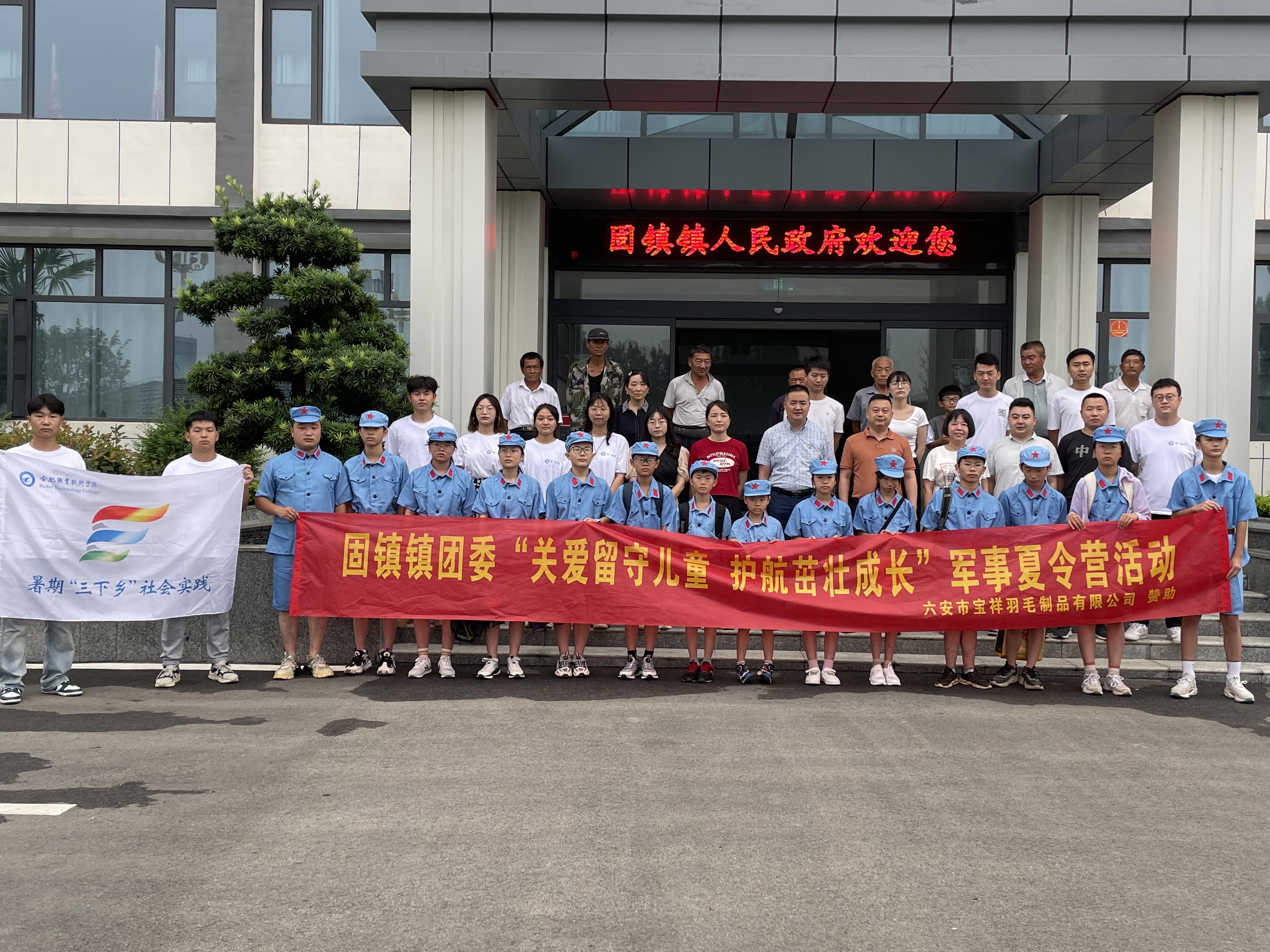 为帮助留守儿童度过一个安全、健康、快乐、充实的假期生活,更好引领广大留守儿童领悟红色故事、感受国防教育、增强思想觉悟。7月19日至7月21日,本次暑期实践团队联合固镇镇团委举办了为期三天的“关爱留守儿童 护航茁壮成长”军事夏令营活动。活动第一天,实践团队和孩子们来到了六安市青少年示范性综合实践基地,在教官的指导下,团队成员和孩子们一起开展了禁毒知识、急救技能、红色教育以及心理健康等课程。在接下里的训练中,孩子们热情高涨的学习了内务整理、跑步、军姿、学唱军歌等军事教育内容。虽天气炎热,但孩子们个个“轻伤不下火线”,达到了良好的学习训练效果。除了军事训练、红色教育,实践团队还在活动间隙带领孩子们开展拓展小游戏,锻炼他们的团队合作意识、自我思考能力和问题解决能力,让孩子们在游戏中活跃身心,感受不同形式活动的多彩魅力。通过举办此次军事拓展夏令营活动,让当地留守儿童接受先进的体验式教育理念,拓宽孩子们的眼界,培养正确的人生观和价值观,增强了家国情怀和责任意识。