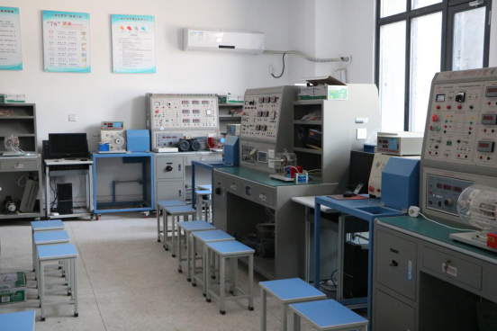 实训室简介:该实训室服务于机电一体化技术、电机与电器技术等专业。通过实训,使学生进一步理解电动机、变压器的结构和工作原理,掌握电机拆装及检修的程序和工艺,并具备对一般电机的维护、选择、设计及故障排除能力。
