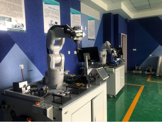 实训室简介:该实训室以ABB工业机器人为主,主要面向机电一体化专业、工业机器人专业《工业机器人技术》、《机器人编程与应用》等课程的实验教学任务及实训,增强学生的专业综合实践能力,针对就业岗位及1+X技能等级证书培训,提升学生在工业机器人“装、调、修、编程”等方面的能力。