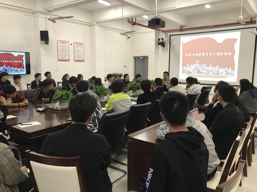 为更深入了解各班级情况,充分发挥学生干部的带头作用,10月22日下午,买球体育官方网站在机电楼二楼会议室召开了买球体育官方网站学生干部座谈会议。该院党总支副书记(主持工作)王克勇、教学办主任宋忠春、学管办主任杨晨、教学办汪洋老师、辅导员徐婧婧老师、张俊杰老师、何舸老师以及18、19级各班级主要学生干部参加了会议。会议由学生党支部书记朱何萍主持。