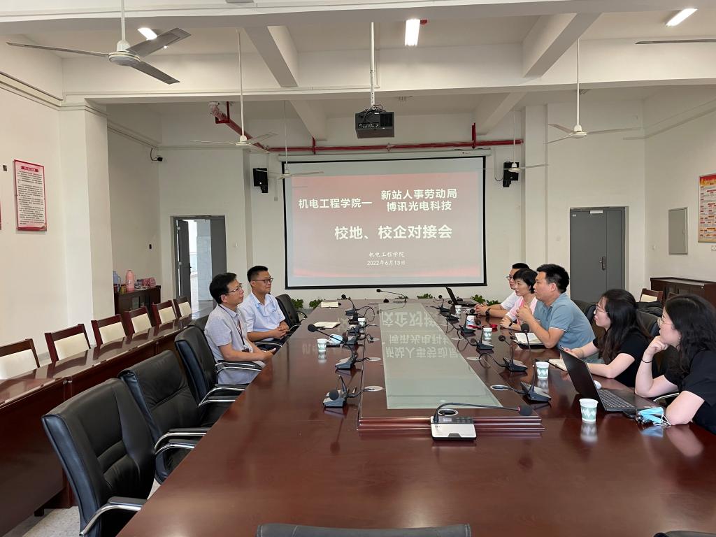 为进一步加强校企合作,深化产教融合,6月13日下午新站区人事劳动局携博讯光电(合肥)股份有限公司一行来访买球体育官方网站,校党委委员、办公室主任王海,买球体育官方网站党总支书记王克勇,院长胡木林和相关教师参加了此次对接会。