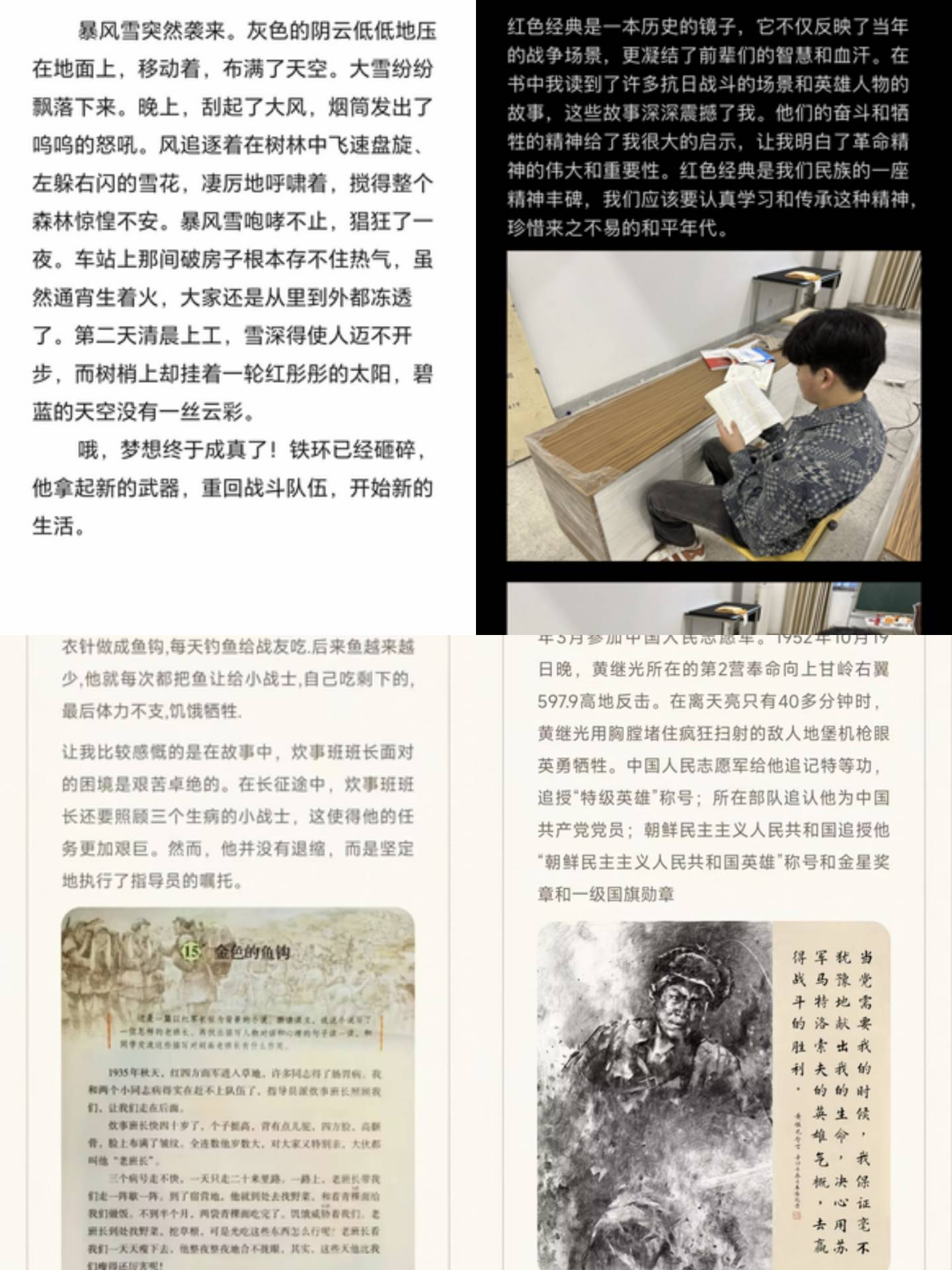 红色文学经典作为中华民族的精神瑰宝,蕴含着丰富的历史沉淀和高尚的人文情怀。通过阅读打卡的方式,品读红色文学经典,学习先辈们的革命精神,不仅可以培养学生的爱国情怀和民族精神,还能提高他们的阅读能力和综合素质。在21天阅读打卡的过程中,同学们通过一系列革命故事,了解红色历史,积淀红色记忆,传承红色精神。(供稿:买球体育官方网站 张开 初审:宋忠春 审核:杨璨)